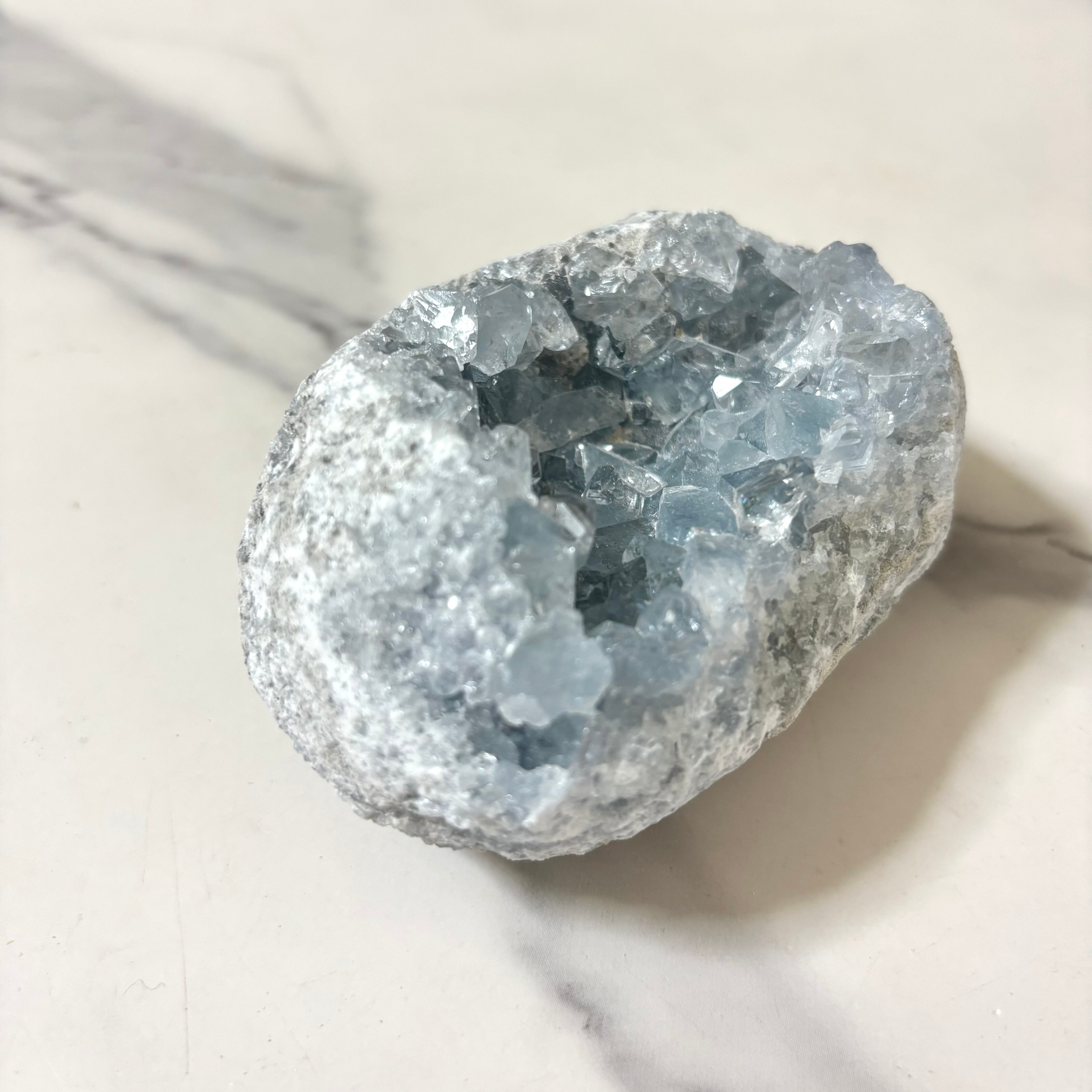 天青石という、青く晴れた空を連想させる和名を持つ、美しいスカイブルーのセレスタイト。