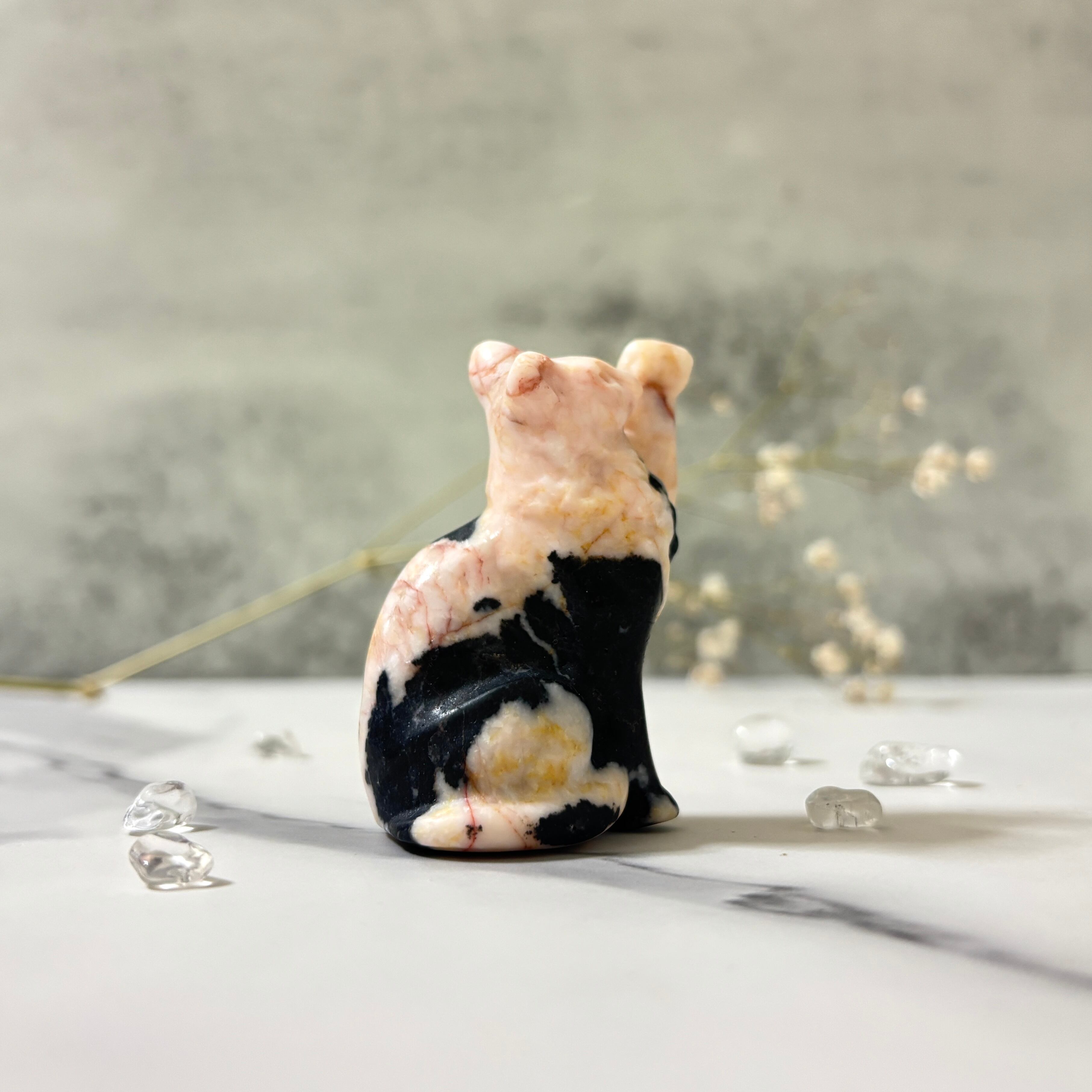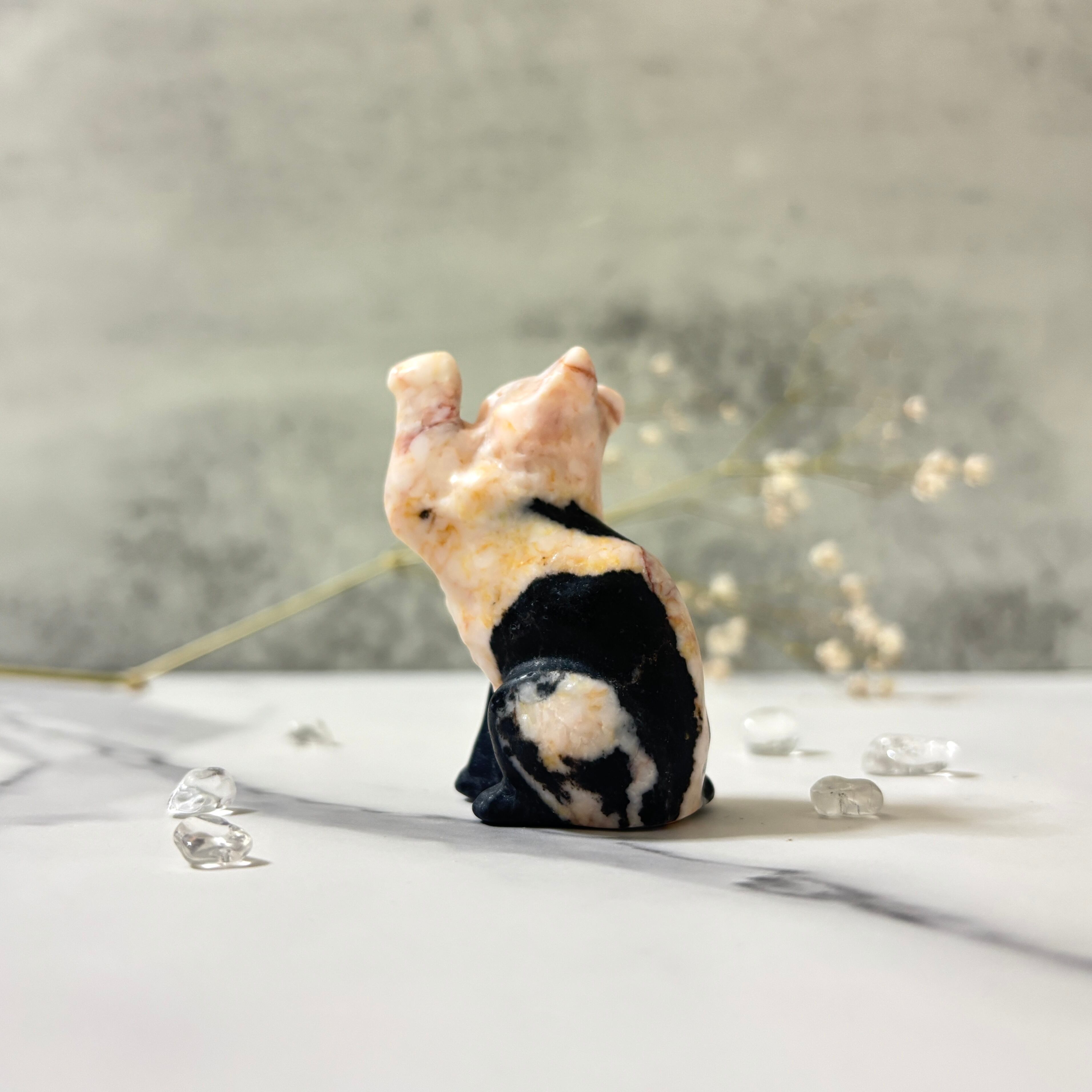 ピンクゼブラストーンのネコちゃん。